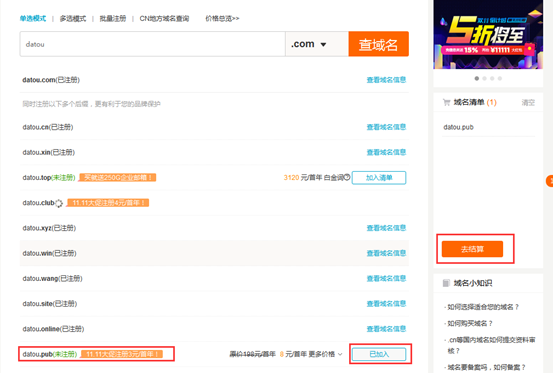 點擊 進入到域名種類查詢界面。