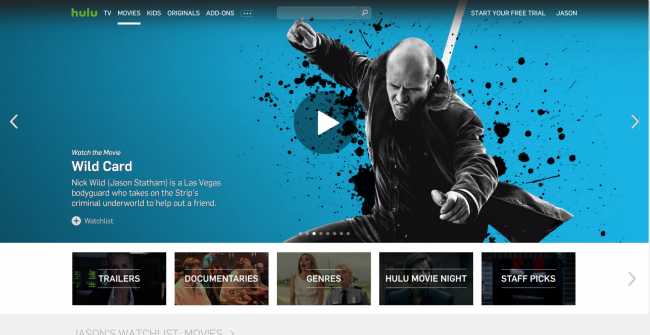 我們可以看看幾個知名的新聞與電視網,比如探索頻道(上圖)和Hulu(下圖)。這類的媒體網站常常依靠滑塊來展示不斷變化的最新熱門文章和視頻等。如果你要提供頻繁變化的大量內容(尤其是視頻內容)時,滑塊是非常好的選擇。